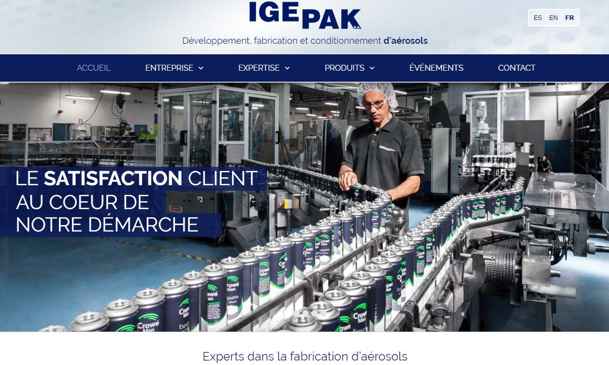 Visitez notre nouveau site internet www.igepak.com, complètement renové en image et contenu, où vous pourrez découvrir notre large éventail de produits et de services ainsi que la valeur ajoutée qu’IGEPAK offre en tant que développeur, fabricant et conditionneur à façon de produits en aérosol.